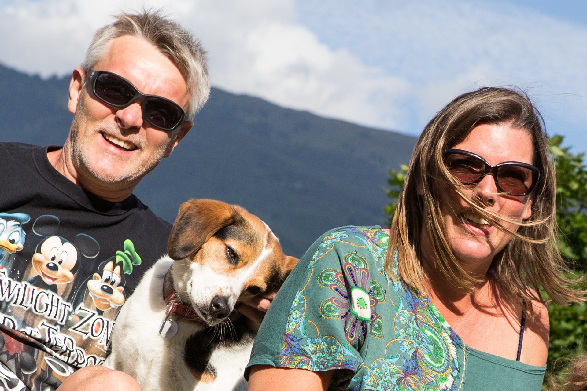 Die Familie Bachmann/Thoma und ihr Haushund Sally freuen sich auf Euch.